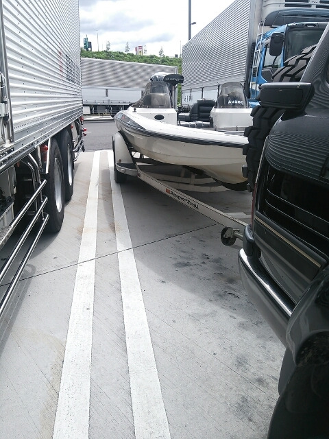 遠賀川の帰り…兵庫県で給油の為PAに寄ると、船が若干後ろに