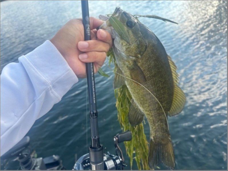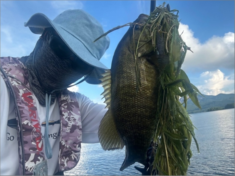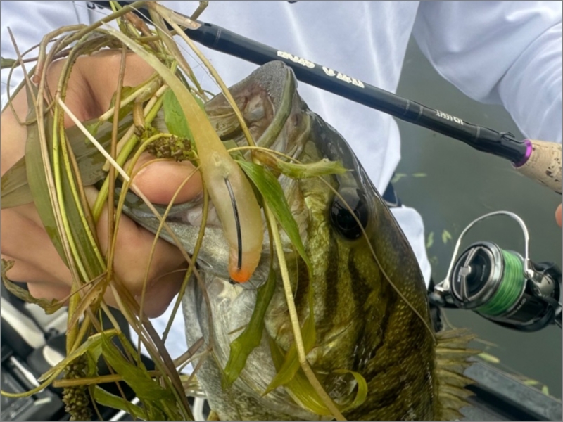 軽量表層ワームをしっかり投げて、誘って、太軸フックを口に掛けて、ウィードから引きずり出す。WSS-ST64L+ならではですね(^.^)